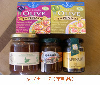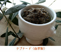 | ところで、フランスのオリーブ生産は南部のプロヴァンス地方が圧倒的に多く、生産量ではスペイン、イタリア、ギリシャにはおよびませんが、良質のオリーブがとれます。そのプロヴァンス地方の料理によく登場する、オリーブを使った、簡単で、ソースや薬味としていろいろ重宝するものをご紹介したいと思います。その名は、タプナードtapenade。プロヴァンス語のtapeno(ケーパーの意味)が語源とされています。このことからもわかるようにタプナードの材料はケーパーとオリーブがベースで、フィレ・アンチョビー、オリーブ油、にんにく、レモン汁、香草などを加えます。オリーブはちょっと苦手と思われる方にもお勧めです。近頃では、フランスからの輸入食材を多く取りそろえているお店で、瓶詰めなどの既製品を手に入れることもできます。 |