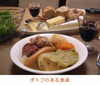 フランスでポトフを注文する場合、ひとつ気をつけなければならないことがあります。メニューを見ても、「ポトフpot-au-feu」という名前だけでは探せないかもしれないからです。店によっては、「プティット・マルミットpetite marmite」か、材料を限定した場合は、「ポテpot e」(主に豚肉とキャベツを使用)とか「プ・ロ・ポpoule au pot」(メインが鶏に限定される)などの名前で出ているので注意が必要です。 |