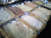 ヨーロッパにも数多くの種類の豆があり、右の写真はイタリアで見かけたうずら豆、白いんげん豆、そら豆などです。1月だったので生の豆は出回ってなかったのですが、日本と一緒で昔から豆が食べられていました。