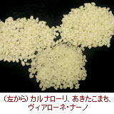 さて本国イタリアでは代表的米料理のリゾットに使う米は、 日本の米とは違い、粘りが少なく、粒の大きさが倍ぐらいある品種、カルナローリ、アルボーリオ、ヴィアローネ・ナーノなどの米が良いとされています。現在、日本で手に入るイタリア米の中には何年か熟成しているものもありますが、これはリゾットにもパスタ同様アル・デンテが好まれるイタリアならではの米事情が関係しています。つまり米は古くなるほど硬化するため、新米が重宝される日本ほど生産年度にこだわりはなく、硬化した古米や古古米の方が好まれることが多いからです。