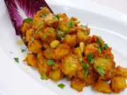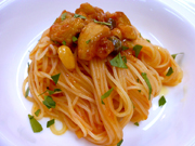 揚げた茄子を甘酸っぱいトマトソースで煮たこれからの夏にぴったりの料理です。シチリアだけでなく、他の南の州にもいろいろなカポナータがあり、茄子のほかに、ピーマンやズッキーニなどを使ったもの、お酢を入れないものとさまざまです。カポナータの語源は、一説によると、すぐに提供できる料理をおいている「居酒屋」を意味するラテン語のカウポーナだといわれています。