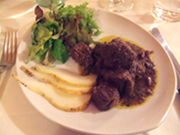 私が食べたときには洋ナシのコンポートが添えられており、初めて見る料理だったので思わず店主に「ペポーゾには必ず洋ナシが添えられるのですか?」と尋ねてしまいました。店主ははじめ、驚いていましたが、にっこりと笑って「私たちの店ではこしょうの利いたこの料理の辛さを和らげるために添えています。すべてのペポーゾに添えられているわけではありませんよ。」と答えてくれました。どうやら洋ナシを添えるのはこの店の特徴のようです。