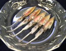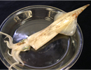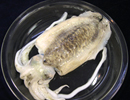 ジンドウイカよりも小さい「ホタルイカ」は、体表にたくさんの発光器があり、刺激が加わると名前の通り海中でホタルのように光ります。産卵直前の3〜5月が旬で、刺し身やボイルにして食べますが、刺し身にするときは中の内臓を取り除いて水洗いしないと中に寄生虫がいる可能性があるので注意が必要です。