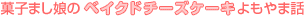 麻紀(以下M):今日はあっという間につくれちゃうチーズケーキを紹介しますね。サクサクとした食感の生地も作るんですけど、なんと麺棒いらず!!使う器具も材料も少なくてすむのでホント気軽に作れますよ。焼く時間が長いのと焼き上がりすぐに食べれないのがちょっと不満ですけど…