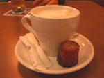 ボルドーのとあるカフェでの写真。コーヒーの横にちっちゃなカヌレが添えられていました。