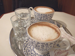 ウィーンのコーヒーで私が好きなのは、やっぱり泡立てた生クリームをこんもりと浮かべたアインシュペンナーかな。ちょっと勢いつけて飲んじゃうと白ひげみたいになっちゃいますけど(^^ゞ