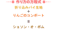 チョッと先生〜、手抜き過ぎじゃありませんか?市販のパイシートにコンポートもジャムってぇ〜(´Д`)りんごがたくさんあるから・・・の“りんごパーティー開催!”じゃなかったですか!もぉ〜。でも、本場フランスのお菓子屋さんではどうしてるんだろ?コンポート炊いてるのかな?あっそういえばショソンってパン屋さんでも売られてますよね?
