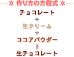 K: 生チョコは口に入れたときのあのとろけるような食感がいいからね。 今年のバレンタインは、ぜひ生チョコに挑戦してみてください。 |