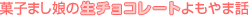 | M: この時期チョコレートの本がたくさん本屋さんに並んでるよね。で、「Mary’s」の、すっごいいっぱいチョコの種類が出てた本を買ったけど、本格的すぎてよくわからへん材料ばっかりだったから結局作れなかった。 |