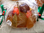 フリュイ・コンフィってとっても古くから作られているもので、紀元前2000年ごろから。もともとはハチミツにつけていたフルーツが始まりで、プロヴァンスで作られるようになったのは中世になってから。ローマ法王の元で、コンフィの組合が作られてアプトでは盛んになったみたいだね。十字軍によって砂糖が伝えられて、砂糖がとても高価だったので、砂糖漬けは、富と権力の象徴として晩餐会で飾られていたそうです!!もちろん保存のためもあったけど、他にも目的はあったみたいだね。今は贈り物として買っていく人がほとんどみたいだけど、後は観光客とかがお土産として買っていくんだろうね。亨子先生はどのフルーツのコンフィがお気に入りですか?