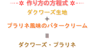 同じバタークリームの仲間で、プラリネ風味だけど、いろんなタイプがあるんですよね。コクや口当たりがそれぞれ違うんです。今回のお菓子にはこのクリームがあいますねぇ・・・・モグモグ・・・・