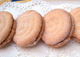| プラリネクリームをはさんだメレンゲの小菓子 |