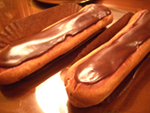 ありますよぉ!みんなが大好きなエクレア。家で作る時の注意点という訳ではありませんが、あまり大きく(長く)生地を焼くと、フォンダンかけるときにお鍋に入らなくなるので注意ですね。そんな大きなエクレアでもうれしいけど、ねっ!!
