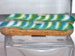 それから、仕上にこのフォンダンをつけるので、生地はしっかり焼いておいた方がいいね。そしてクリームを中に詰めたらすぐに仕上しないと、生地が柔らかくなるとフォンダンづけがさらに難しくなる〜。