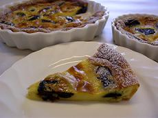あっプラムのお話でしたね(^^ゞ えっと今回使った干しプラムはフランス・アジャン産のものです。大粒で柔らかくて風味が良くて。干しプラムがなければレーズンでもいいですよ。フレッシュのさくらんぼと一緒に焼くとクラフティっぽくなるかな。干しプラムが少し固かったり、独特のにおいが気になるのなら、シナモンやラム酒、柑橘類の香りをつけたシロップに漬けて柔らかくしてから使うといいですよ!