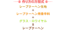 K : へー。家でレープクーヘンを作る場合は、いつ頃から準備するものなんですか? |