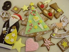 | KIMIKO : レープクーヘンなど、ヴァイナハツゲベック(クリスマスクッキー)の準備を始めるのは、アトヴェントの1〜2週目が多いみたい。アトヴェントは、クリスマス前の4週間の準備期間で、11月27日以降の日曜日から始まるのよ。ちょうどこの頃からクリスマス市も始まることになっているの。色々なクッキーを作って、なくなりそうな物から焼き足していくんだけど・・・・。でも家庭で沢山の種類を焼くのは大変だから、親戚や知人同士得意なクッキーを焼いて交換したり、作るのが難しいクッキーは買い足したりするみたいよ。 |