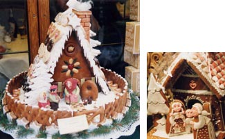 N : グリム童話の中ではお菓子の家はレープクーヘンだけでできているわけじゃないけどね。クリスマス時期にヘンゼルとグレーテルのオペラが上演される事も多くて、色んな場所でヘクセンハウスが使われているんだって!お菓子屋だけでなく、薬屋や、ローソク屋さんでもレープクーヘンはディスプレーとして良く見たなー。 |