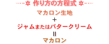 N: シンプルだから、プロはオリジナリティーを発揮しやすいお菓子なんだろうね!素人には、シンプルだからこそごまかしがきかなくて難しいんじゃないかな?色んな味を作りたくなるとは思うけど、まずは基本のマカロンの作り方で練習して欲しいなー。 |