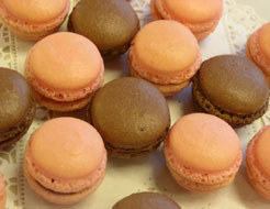 亨子(以下K): それからマカロン・ムーMacarons mous、またの名をマカロン・パリジャンMacarons parisiensはロレーヌ地方のものに比べると表面がツルっとして中が柔らかく、色とりどりで可愛いよね。大きさも大小作れるし。最近は大きめのマカロンにクリームやフルーツをのせて、これで一つのお菓子になっているのを見るね。 |