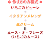 直子(以下N): そうね。今はいろんな種類のいちごが手に入って、それだけで酸味と甘味のバランスとれたおいしいいちごが多いもんね。砂糖を加えるのがもったいない感じ。でも、そのまま生クリームを加えただけじゃ、味や色がボケた感じになるのよね! |