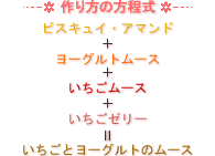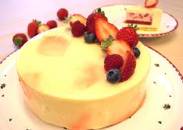 今回はジュレ・デセール使うの?すご〜い!麻紀先生がいうようにソフトに固めたいときはいいよね。それにゼラチンと違って戻す必要が無し。一般の人が使うにはちょっと量が多いかな?1バケツ2kg入りだよ〜。でも今までゼラチンしか使ってこなかったからそういう凝固剤が製菓材料にあるってことを知ってもらうためにはいい機会だね。これからは新しい材料の紹介もしないとね。 そういえば私も以前にいちごのムース(ムース・オ・フレーズ)を紹介してますよ〜ん。ヨーグルトと合わせるなんておいしそう 早く、早く!!