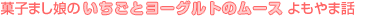 ところでこのヨーグルトのムース、フロマージュ・ブランで作ってもいいんじゃない!?一見ヨーグルトに似てるよね。牛乳に乳酸菌を加えて発酵させて、生クリームも加えてあるからやっぱり高脂肪だね。なのにたっぷりお砂糖をかけ食べてた。塩、こしょうでもおいしいよ!!他にどんな食べ方してた?