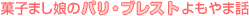 | 「作るのが好き、たべるのは大好き、そしておしゃべりも大好き」という三人娘が、楽しくおしゃべりしながら、お菓子作りの秘訣を伝授。さても女三人寄ればかしましい?いえいえ、「菓子まし娘」はどんどんお菓子が増えていくという意味もこめて「菓子・増し」なのです!基礎からはじめて、作り方をくわしく解説していますから、お菓子作りがはじめてという人でも安心してチャレンジしてください。 |