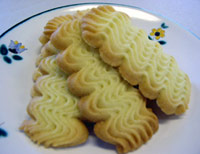 | C: 食べだすととまらなくなっちゃうんですよねぇ。中に入れるものも、紅茶の葉っぱとかナッツとかいろいろ替えれるし、形も、絞る、丸める、抜く・・・・と作っていても楽しめちゃう。アイスボックスクッキーは市松模様にもなるしアーモンドスライス入れても一緒に切れて断面が面白いものができるね。絞り出しの生地は星の口金でまっすぐ絞ったり、渦にしたり、ハートになったり。トッピングにも凝れるのがまた、楽しい! |