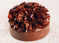| N : そうね。このケーキはチョコレートのテンパリングっていう操作や、同じ厚み、大きさのひだを取る技術がいるから、決して初心者むきではないと思う。本来は、大理石の上でひだを作っていくと良いんだけど 、その辺はなくてもできるように考えてみたのよ・・・。 |