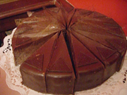 また招んでくださいね〜さて!今回はみなさんのお察しの通りザッハートルテです(^^)!ご存知、有名なウィーンの銘菓ですね。ザッハー(Sacher)とは・・・19世紀の初めに当時の宰相、メッテルニヒ侯の料理長であったフランツ・ザッハーが考案したことからつけられた名前だとか・・・私にしては めずらしく賢い発言!?