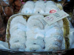 C : そうだよね〜。自分で作って誰かに食べてもらえたらうれしいね。でも、あまり買わないんですね。私なんて買った時に袋に入れてもらって歩きながら食べたり、最近もいただいたバニレキプファルン、ワントレー食べちゃいました!小さいものが50個並んでいました。袋に入っているのもよいけど、きれいに並んでいるのもとってもヨーロッパちっくですよね。日本でもガレットとかクッキーを結構買っちゃうなぁ、私。