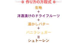 | 亨子(以下K): そうね、フランス以外というとイタリアのパネットーネとかドイツのシュトーレンかな。どちらも発酵生地だね。 |