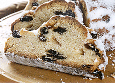 | H : クリスマス当日は、料理の準備で忙しく、お菓子まで手が回らない。でも、一年で一度のお祭りの日だからおいしいお菓子も食べたい!!で、日持ちのするお菓子を前もって作っておくようになったのかな?今回紹介するシュトーレンは、ドイツではなじみ深いクリスマスのお菓子。イタリアのパネットーネと同じ発酵生地だけど、ふわふわした感じではなく、ずっしりと重みのあるがあります。 |