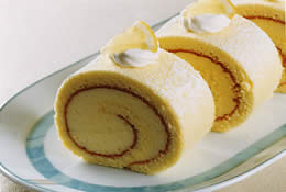 | 治代(以下H): うん、生地そのものの味、風合いを生かして・・・、柔らかく、ソフトに焼き上げたスポンジ生地に、レモン風味の酸味の効いたクリーム。 |