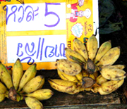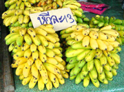 世界中で栽培されているバナナは大きく2つの種類に分かれ、生食用(Table Banana)と料理用(Plantain)があり、300種類以上あると言われています。ここでは日本で手に入る生食用の3種類のバナナについて、簡単な説明を加えておきましょう。尚、バナナの写真は2001年の冬バンコク市内にある「パーク・クローン市場」にて撮影したものです。