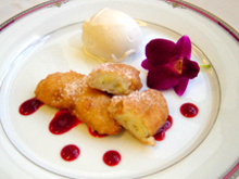 そのまま食べて美味しい生食用のバナナですが、今回はココナッツ風味の衣をつけた天ぷらを作ってみましょう。香ばしくこんがりと揚げてカリッとした衣とアツアツになって甘味の増したバナナの組み合わせを楽しんでください。さらにアイスクリームを添えて、一緒に口の中に運べば、気分はとってもパラダイス。素敵なタイランド直行便です。