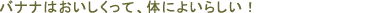 バナナは栄養的にも優れ、エネルギーとなるブドウ糖、果糖、ショ糖、でんぷんなどたくさんの糖質が含まれているため肉体労働やスポーツの前の補助食品として、またポリフェノールやカリウム、マグネシウム、食物繊維などを多く含み、免疫力を高める効果(皮が黄色く色づいた後、斑点ができた頃が一番効果がある)が強いため、生活習慣病の予防やガンの予防に効果があるとの事です。