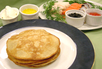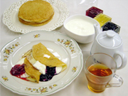 あとは冷めないようにブリヌイを熱々に保温し、好みのジャムやハチミツ、それに果物などを添えて召し上がってください。