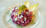 サラダであれば茹でたじゃがいもと一緒にサワークリームやマヨネーズ、ディルなどと和えれば、立派な前菜としてもお出しできます。 |