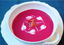 ロシア料理の代表格のひとつ、「ボルシチ」。とっても魅惑的な色をしたスープですね。ところでこの朱色は何なのでしょう?と思う方も多いでしょう。実はビーツと呼ばれる野菜で、難しく表現すると「アカザ科フダンソウ属2年生草本」となるそうで、赤かぶのように見えますが、カブやダイコンとは関係なく、なんとホウレン草と同じアカザ科でサトウダイコンの仲間だそうです。因みに、日本ではこの燃えるような色合いから火焔菜(カエンサイ)とも呼ばれています。 |