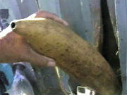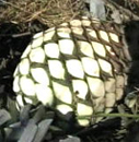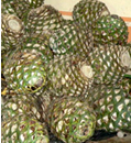 次にメスカルについてです。メスカル用マゲイはプルケ用マゲイの2/3ほどの大きさで、低地の暖かい地方で栽培されています。採集時期になるとコアと呼ばれる道具で葉を切り落とし、肥大した茎の根元のみにします。この形がパイナップルに似ているところからピニャ(パイナップルの意)と呼ばれ、重さは1個40〜90 kg ほどにもなります。