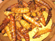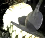 焼き上がったピニャは、さらに細かく砕き、馬やロバの引く車輪形の臼でドロドロになるまですりつぶします。こうしてできた繊維と絞り汁を大桶に移して約4日間発酵させ、発酵作業を終わったものは、簡単な装置を使って蒸留します(蒸留技術は、8世紀ごろムーア人によってスペインへ伝えられ、スペイン人によってさらにこの国に伝えられたもの)。最終蒸留を終えたメスカルは、素焼きの大甕にひとまず受け、その後小売りされます。テキーラよりは少々青くさいのが特徴で、現在はオアハカ州のものが有名です。また瓶のなかに唐辛子や、竜舌蘭に寄生するグサーノ(ゾウムシの一種)の幼虫(メキシコではもともと食用とされている)、サソリの抜け殻などを入れたものもあります。販売促進の話題づくりのためだそうです。