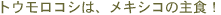 日本でトウモロコシと言えば、黄色くて甘みのある柔らかい物を思い浮かべるのですが、メキシコではこのような品種をエロテ(Elote)と呼びます。トルティージャに使われるのは大粒で白っぽく甘みのない硬粒種で素朴な味わいのトウモロコシで、これはマイス(Maiz)と呼んで使い分けられています。 乾燥させたマイスに石灰を加えた水を注いで一晩浸し、翌日それをメタテ(Metate)と呼ばれる火山岩から作られた三脚付きの皿状石臼でマノ(Mano)と呼ばれる石棒を使ってよくすり潰します。この生地をマサ(Masa)といい、薄く丸く伸ばしてコマル(Comal)と呼ばれる土製か鉄製のほうろく状の鍋で焼いたものがトルティージャです。石灰を加えることにより、トウモロコシの粒の薄皮が取れやすくなり、特有の香りを強め、カルシウムの補いにもなります。さらに酸性食品であるトウモロコシに、アルカリ性の石灰が中和剤として働き、消化をよくする効果もあります。またマサは焼くだけではなく、ゆでたり蒸したり揚げたりもでき、日本人にとっての米と同じ主食としての食材と言えるでしょう。 |