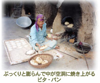 ピタというパンも焼き、半分に切って袋状になった所に具を詰めて食べられていますが、マグレブでは、今でもクスクスが主食の座をゆずっていません。 |