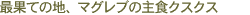 地理的にマグレブと呼ばれるのは、モロッコ、アルジェリア、チュニジアの3カ国ですが、食生活において共通面の多いリビアもその中に含めることになります。この地方の原住民ベルベル人が、クスクスを作り出した人々です。