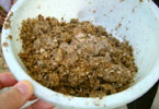 4)色、におい、味をチェックし、良ければ上澄みを漉す。右は漉してわずかに残った物で、肥料として使うらしい。