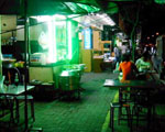 屋台の単品料理より、少しは落ち着いて色々な料理を堪能したいと思えば大衆食堂がお勧めです。テーブルは屋内に留まらず、外の道路まで自由にはみ出しています。氷を敷き詰めた陳列ケースに魚介類、肉類、野菜類を並べ、できる限りのお客の我が儘を聞き入れて、好み通りの料理をおいしく手軽な値段で提供しています。以前はお酒の持ち込みは自由でしたが、最近では持ち込み料をとる店もあるとの事。いずれにせよ、家族や友人同士が集まり、ゆっくりとくつろぎながら食事ができます。 |