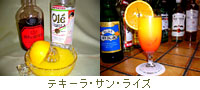 ということで、今回はこの「テキーラ」をおいしく、手軽に楽しむ方法を幾つかご紹介します。まずは辻調のバーテンダーからカクテルを。「テキーラ・サンライズ」これはすごくお勧めです。ベースはテキーラとオレンジジュースですが、それにグレナデンシロップ(ざくろのシロップ)を沈めて朝焼けに見立てます。オレンジジュースとグレナデンシロップが入るので、とても飲みやすいカクテルです。 このカクテルはローリングストーンズのミック・ジャガーが公演先で好んで飲んだり、イーグルスが同名の曲を作ったことで有名になりましたね。そういえばメル・ギブソンとカート・ラッセル主演の「テキーラ・サンライズ」という映画もありましたね。 |