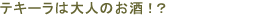 | 世界中にはいろいろなお酒がありますね。フランスはコニャック、イタリアはグラッパ、スペインはシェリー、アメリカはバーボン、イギリスはスコッチ・・・・と、どのお酒もその土地柄を表す、おいしいお酒です。それじゃあメキシコといえば?そう「テキーラ」です!この「テキーラ」、メキシコ特産のアガベ・アスール・テキラーナという竜舌蘭(リュウゼツラン)を原料とし、しかもメキシコのハリスコ州、ミチョワカン州、ナジャリ州の一部で製造されたもののみしか「テキーラ」と名乗ることができないんです。「テキーラ」には、アルコール度数が高い、というイメージがあります。風味も独特で、お酒は好きだけどちょっと・・・・という方も多いかもしれませんね。 |